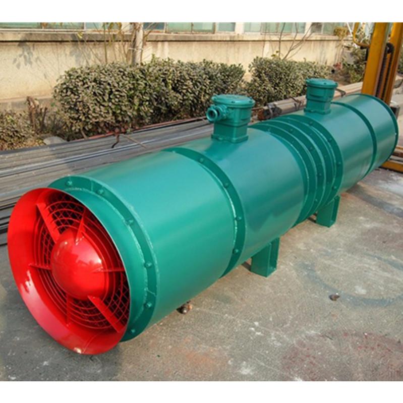 该通风机具有结构紧凑、效率高、噪音低、逆风性能好、送风距离远等优点,特别是噪音低,可改善工人的劳动环境,符合国家的环保要求,是煤矿井下局部通风的理想设备。其结构特征为隔爆型、消音、轴流式,防爆标志ExdI。