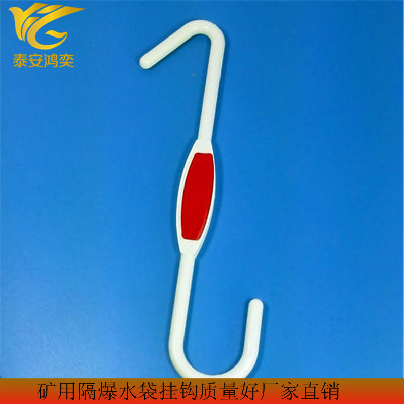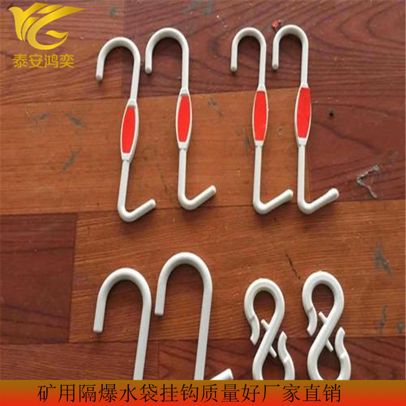矿用隔爆水袋挂钩,矿用水袋挂钩,水袋挂钩,它是隔爆水袋(矿用隔爆水袋)吊挂配套产品,隔爆水袋挂钩主要应用在矿井下隔爆棚隔爆水袋的钩挂。具有抗静电,阻燃,耐寒,耐磨等优点。质量好,价格低。pvc的材质。