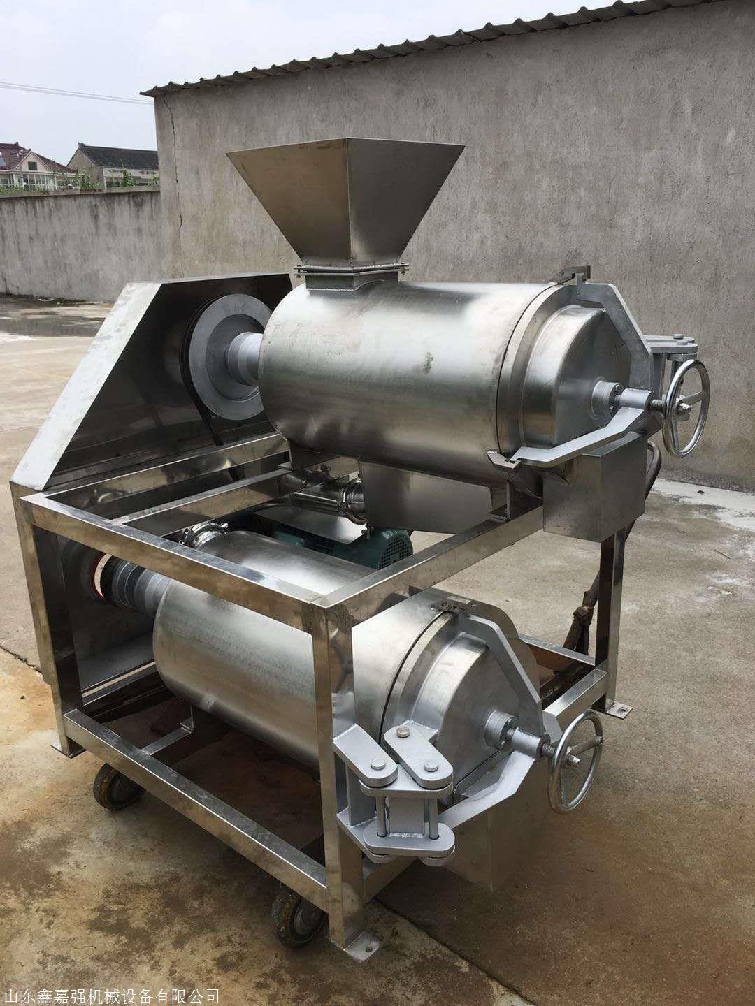 鑫嘉强牌榨汁机本机为可移动双螺旋连续式压榨机。由机架、传动系统、进料部分、榨汁部分、护罩以及电器控制部分等组成。螺旋由电机经皮带减速箱带动,其中压榨螺旋与主轴一起旋转,输送螺旋套在主轴上与压榨螺旋作反向旋转。