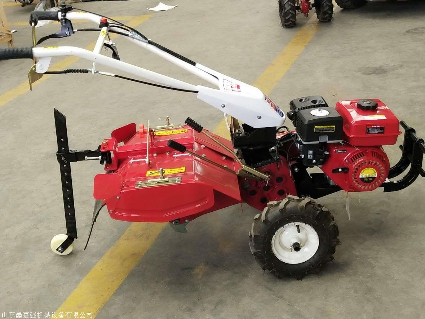 机器包括机架、可调高低扶手,机架上设有(风冷或水冷)柴油机或汽油机、机架和扶手上设置有变速箱,变速箱的输出轴上设置有能够沿轴移动的驱动轮或链轨.传动方式主要有:全齿轮传动、皮带传动、链条传动三种传动方式.该机具有重量轻,油耗低、相对功率大,结构紧凑、机动性强、操纵轻便灵活的特点。可爬坡、越埂、阶梯性强。广泛适用于平原、山区、丘陵的旱地、水田、果园、菜地、烟地的深旋耕、浅旋耕、犁耕。配上相应机具可进行旱地旋耕、水田旋耕、抽水、开沟、喷淋、喷药除草碎土等作业,还可牵引拖车进行短途运输,是大中型农机无法媲美的多功能田园管理机,工作稳定可靠、使用寿命长、维修方便等特点。是进入农民家庭 理想的田园