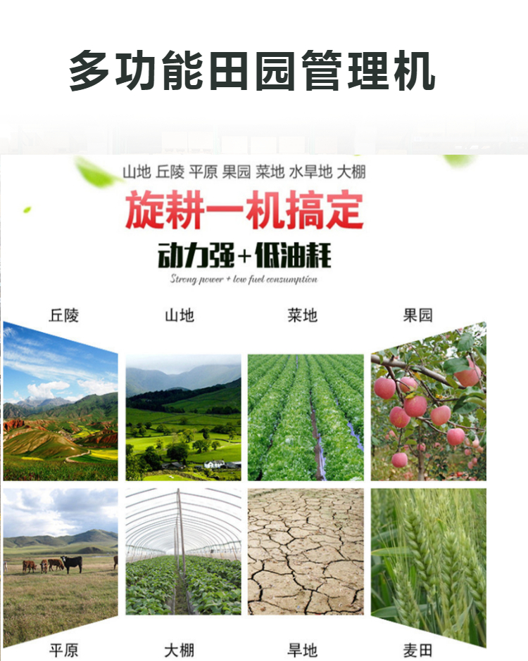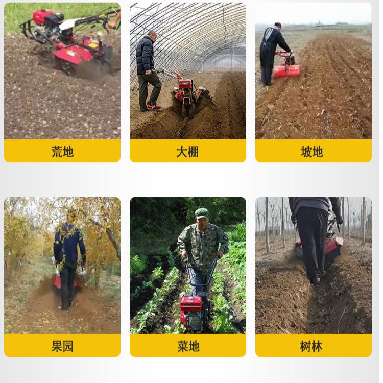 2.体积小、重量轻、操作灵活、安全方便,特别适合在大棚、水田、果园、葡萄园、梯田、坡地以及小块地中使用。