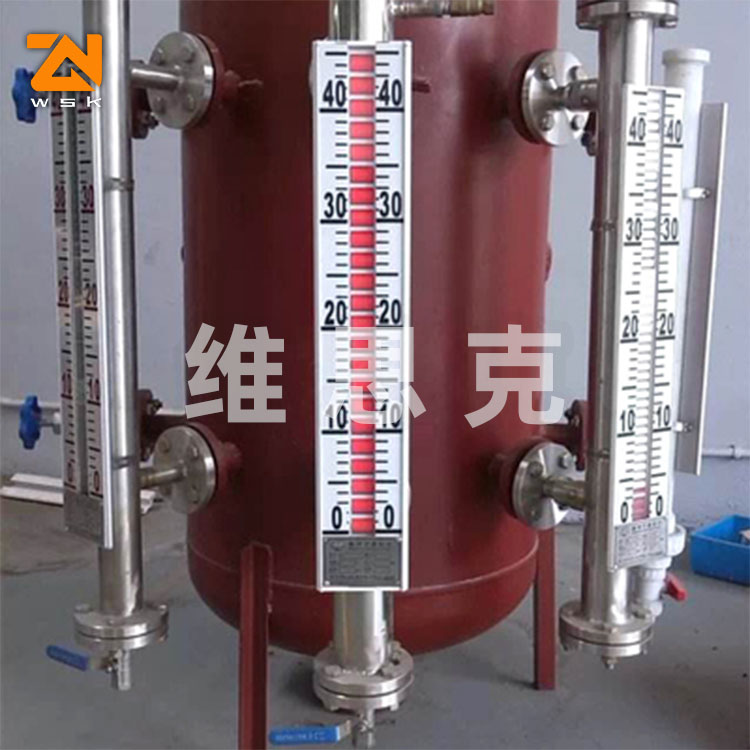 磁翻板液位计是本公司引进、收外同类产品,并加以收、消化、提高,按原化学工业 部颁布的磁性液位计标准HG/T21584-95研制生产的产品。可用于各种塔、罐槽、球形容器和锅炉等设备的介质液位检测。该系列磁性液位计可以做到 密封,防泄漏和适应高压高温、腐蚀性条件下的液位测量,具有可靠的安全性,它弥补了玻璃板(管)液位计指示不清晰,易破碎的不足,不受一、低温度剧变的影响,不需多组液位计的组合。全过程测量无盲区,显示醒目、读数直观,且测量范围大。特别是现场指示部分,由于不与液体介质直接接触,所以对高温、高压 粘度、有有害、强腐蚀性介质, 显其优越性。因此,它比传统的玻璃管,板式液位计具有 的可靠性、安全性、先进性、实用性。