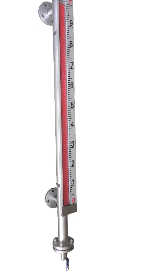 浮球液位计由浮球、插杆等组成。浮球液位计通过连接法兰安装于容器顶上,浮球根据排开液体体积相等等原理浮于液面,当容器的液位变化时浮球也随着上下移动,由于磁性作用,浮球液位计的干簧受磁性吸合,把液面位置变化成电信号,通过显示仪表用数字显示液体的实际位置,浮球液位计从而达到液面的远距离检测和控制。