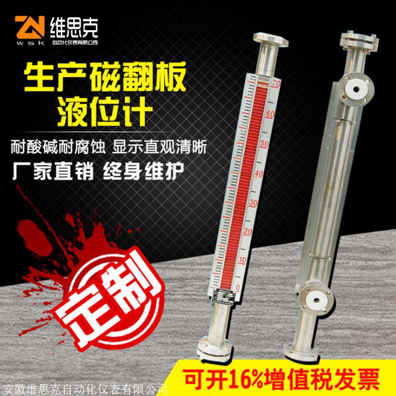 液位计根据浮力原理和磁性耦合作用原理工作的。当被测容器中的液位升降时,液位计主导管中的浮子也随之升降,浮子内的磁钢通过磁耦合传递到现场指示器,驱动红、白翻柱翻专180°?,当液位上升时,翻柱由白色转为红色,当液位下降时,翻柱由红色转为白色,指示器的红、白界位处为容器内介质液位的实际高度,从而实现液位的指示。加装限位开关实现液位报警与控制。加装液位变送器实现标准信号输出供显示与控制。