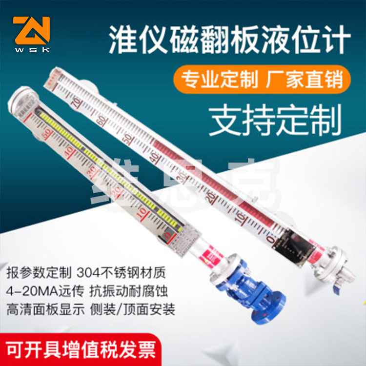 磁翻板液位计是本公司引进、收外同类产品,并加以收、消化、提高,按原化学工业 部颁布的磁性液位计标准HG/T21584-95研制生产的产品。可用于各种塔、罐槽、球形容器和锅炉等设备的介质液位检测。该系列磁性液位计可以做到 密封,防泄漏和适应高压高温、腐蚀性条件下的液位测量,具有可靠的安全性,它弥补了玻璃板(管)液位计指示不清晰,易破碎的不足,不受一、低温度剧变的影响,不需多组液位计的组合。全过程测量无盲区,显示醒目、读数直观,且测量范围大。特别是现场指示部分,由于不与液体介质直接接触,所以对高温、高压 粘度、有有害、强腐蚀性介质, 显其优越性。因此,它比传统的玻璃管,板式液位计具有 的可靠性、安全性、先进性、实用性。