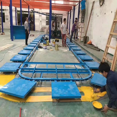 转盘发泡生产线:该生产线用于自洁皮发泡、鞋底发泡、汽车座椅发泡、汽车头枕生产发泡线。采用环形链式,由变频调速制动电机运行,生产线工作时为连续循环动作、操作简单、传动平稳、生产效率高等特点。 采用圆盘链式,该生产线可承载模具100吨运行。