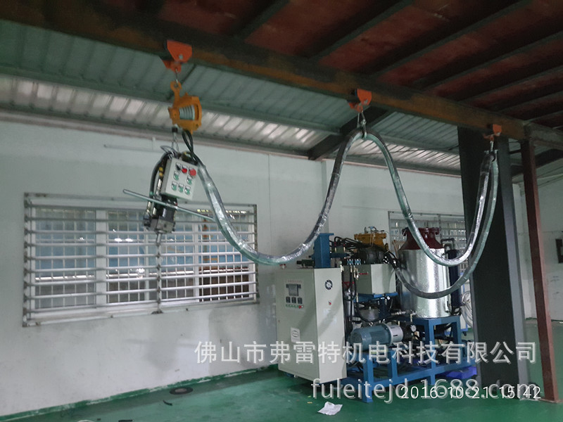 FLT500L系列聚氨酯发泡机,具有微电脑64点PLC+双变频多功能控制装置、能实现2-4组独立对比控温,