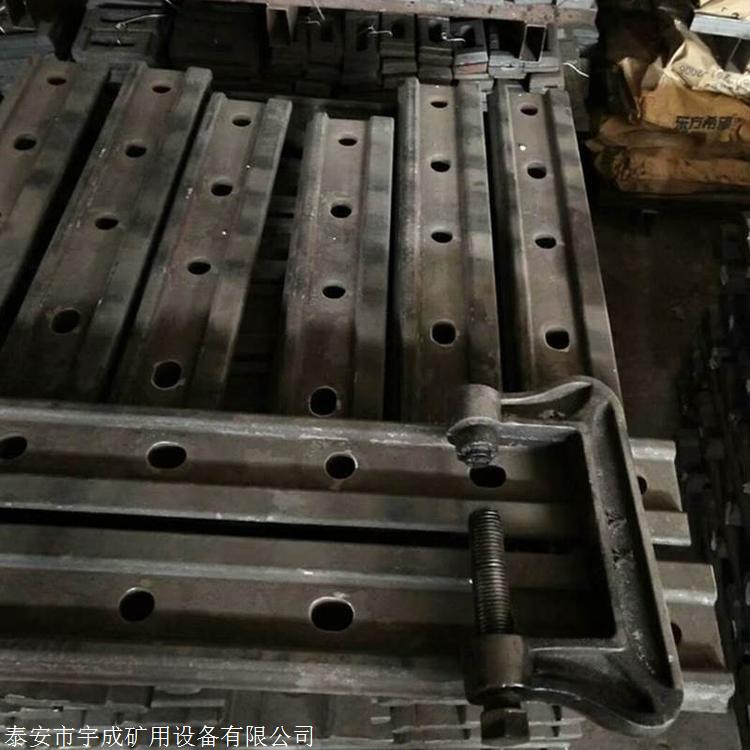 泰安市宇成矿用设备有限公司供应轧制、铸造(材质:QT400)38Kg/m、43Kg/m、50Kg/m、60kg/m钢轨连接用鱼尾板(接头夹板)、鱼尾螺栓、轨距挡板、扣板、铁座、挡板座等配件,并可根据样品或图纸生产各种异型鱼尾板,型号齐全,价格实惠,如果您有需要,请联系我们。