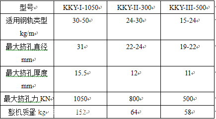 KKY液压挤孔机分为:KKY300液压挤孔机,KKY500液压钢轨挤孔器,KKY1050液压挤孔机