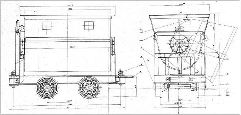 KFU0.75-6翻斗式矿车车箱断面为U形,支承在车架的翻转轨上,车箱在翻转轨上翻转卸载。KFU0.75-6翻斗式矿车用在矿山或建筑工地上,用来运输碎的块状物料。如:矿石、煤炭、石头等。KFU0.75-6翻斗式矿车结构简单,坚固耐用、使用方便、只需人力打开止动板就能很容易地卸下物料。轮轴采用了滚柱轴承,有效地减少了运行阻力,用人力即可推动。