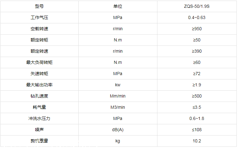 二、ZQS-50/1.9S气动手持式钻机参数图: