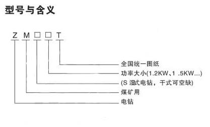 一、ZMS15T湿式煤电钻型号表示: