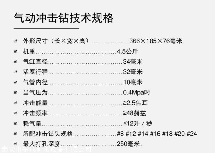 QCZ-1气动冲击钻的参数: