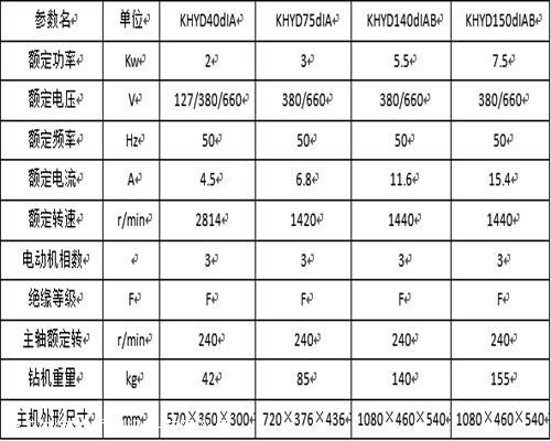 二、KHYD140岩石电钻参数表: