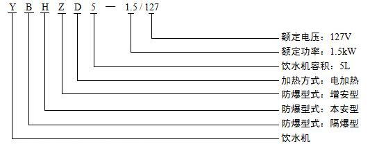一、YBHZD5-1.5/127防爆饮水机型号表示图: