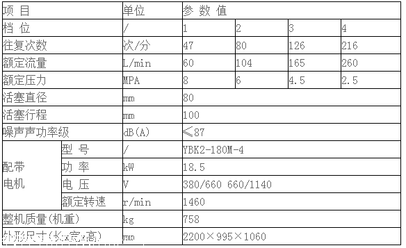 一、BWD-260/8往复式泥浆泵参数表: