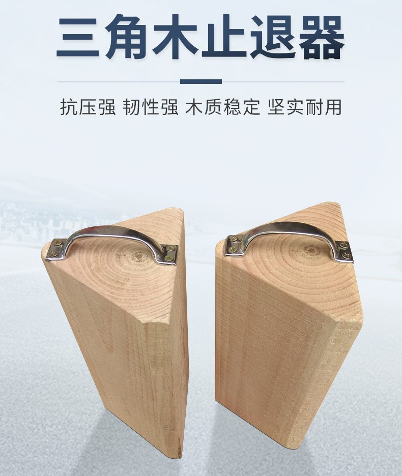 一旦车辆在上坡道路上打滑或遇到路面,驾驶员可以通过将三角木放在车轮下来很好地固定车辆,三角形木方。