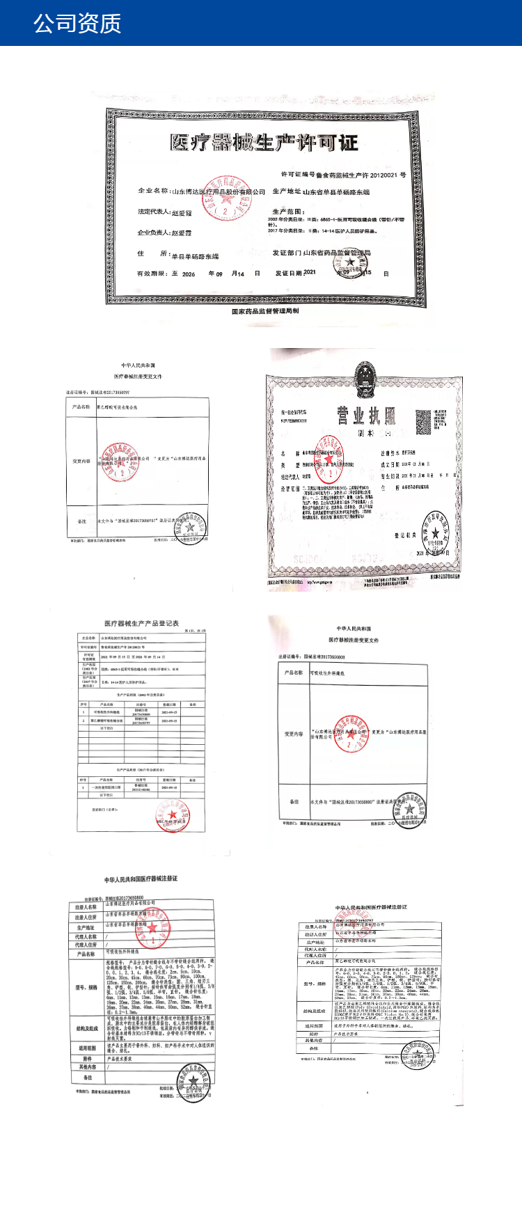 邦达牌"可吸收性外科缝线”(内窥镜圈套线)是我公司于2000年在国内内窥镜手术权威及医技培训导师刘衍民教授的指导下自主开发研制而成,该产品在2014年取得了国家实用新型发明专利,填补了当时国内该类型产品的空白。