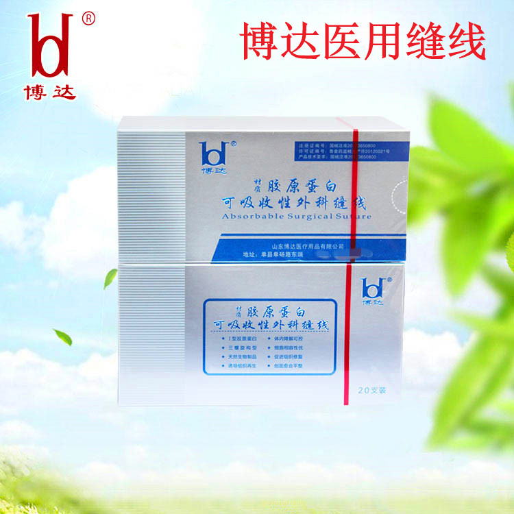 可吸收性外科缝线由健康青山羊肠衣中的胶原蛋白加工而成肠衣中的主要成分是胶原蛋白,有11种胶原蛋白类型,结构式为∝型,其平均分子量约为35.4万道尔顿, 其中胶原蛋白含量为82.39%,炽灼残渣为1.01%/100g在人体内径酶解产生二肽等低聚物,被人体组织吸收,缝合针基本材料为3Crl3不锈钢丝。