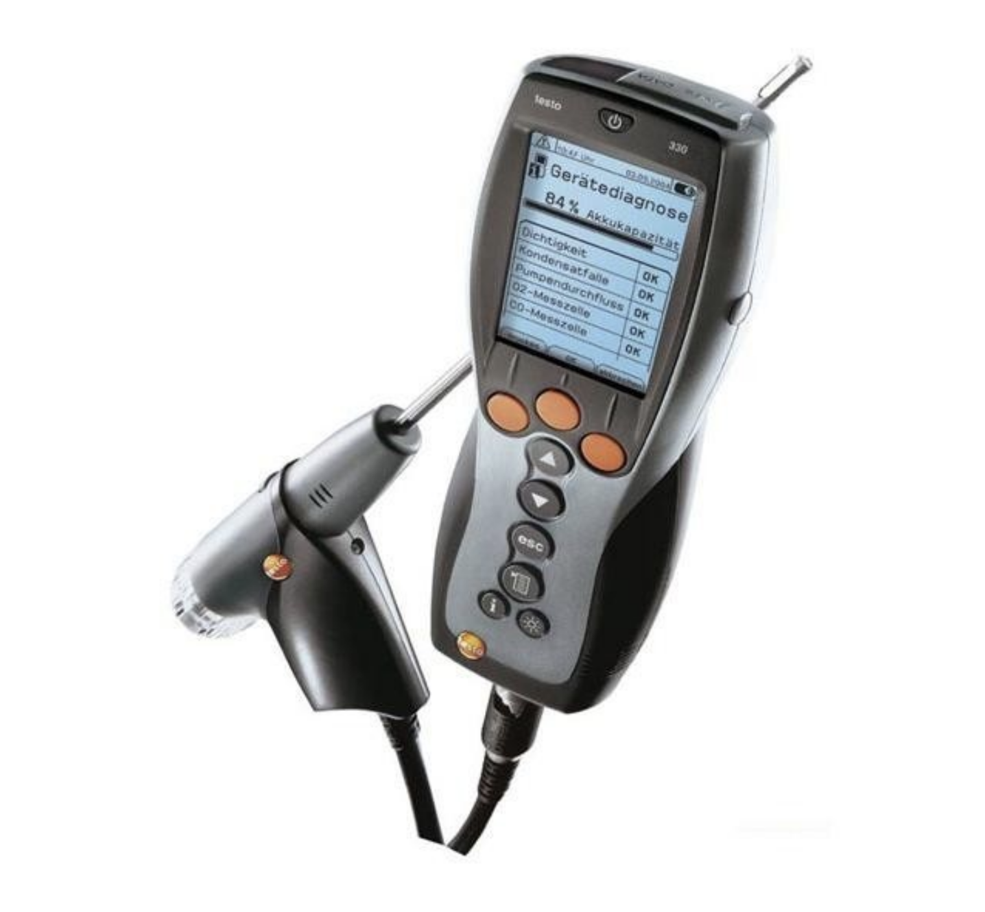 2.testo340仅标配O2传感器,其余3个传感器可根据不同应用而任意选择搭配。
