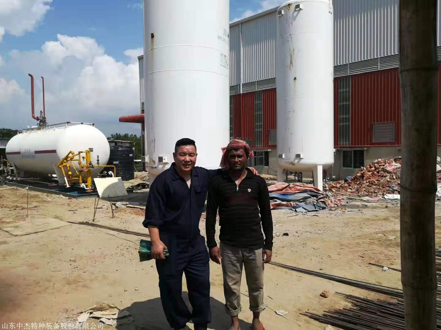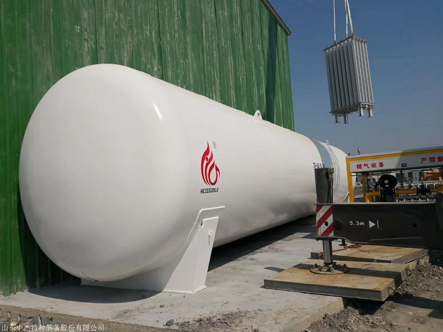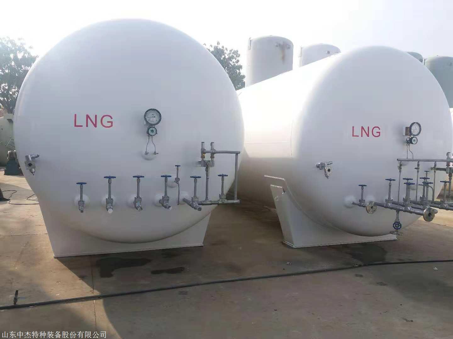 液化天然气储罐为卧式、双层圆筒真空粉末绝热结构,内筒盛装LNG,材料为S30408,封头选用标准椭圆型封头,外筒面向大气,材料为Q345R低合金钢,内外筒之间采用八点支承结构。夹层厚度250mm,内外筒夹层中充满保温材料珠光砂绝热材料并抽真空,内外层夹层压力为压力≤5Pa,出厂真空度优于国家标准,确保日蒸发率的指标;储罐备有整套操作的阀门、仪表。通过这些阀门、仪表可实现液体的进出和压力、液位的就地观测。