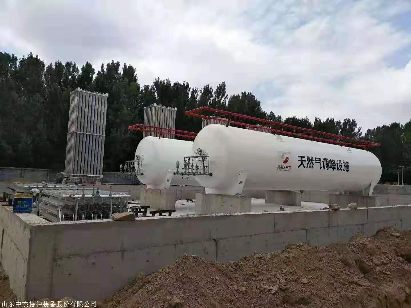 本产品为卧式固定式真空粉末绝热低温储罐,储罐为双层圆筒形结构。内容器用来储存低温液态天然气,外壳形成和保护真空绝热空间,夹层填充珠光砂,并抽成真空状态,形成良好的绝热系统。外壳和支撑系统的设计能够承受制造、运输、安装和使用时所产生的相关外力。储罐底部设置有供操作用的整套阀门、仪表及安全装置。