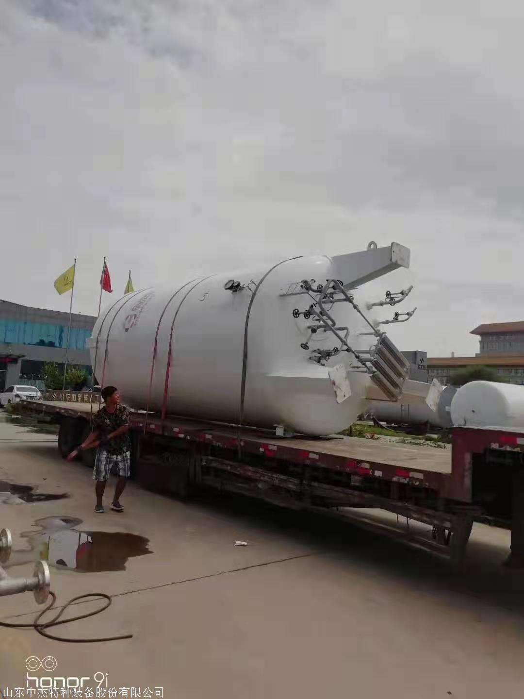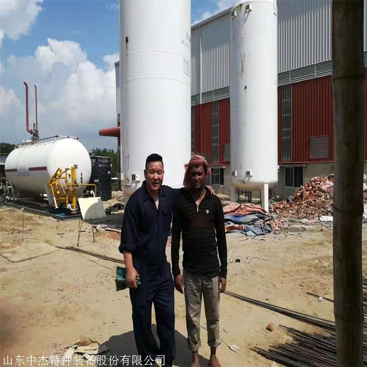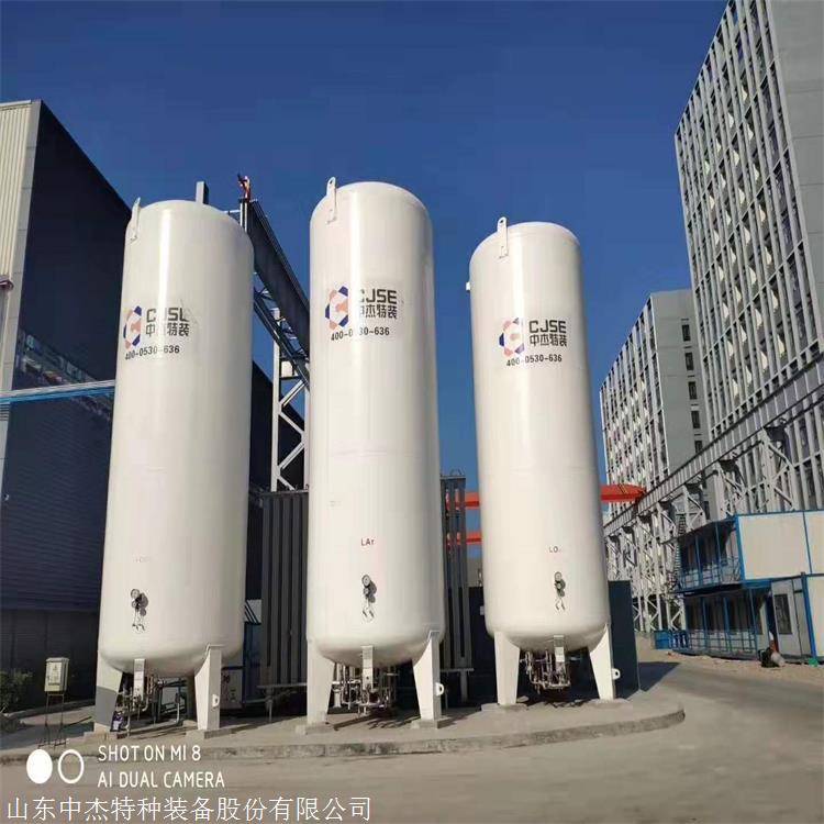 液氧储罐为立式、双层圆筒真空粉末绝热结构,内筒盛装液氧,材料为S30408,封头选用标准椭圆型封头,外筒面向大气,材料为Q245R碳素钢,内外筒之间采用拉带和支承双结构。夹层厚度300mm,内外筒夹层中充满保温材料珍珠岩绝热材料并抽真空,内外层夹层压力为压力3Pa,出厂真空度优于国家标准,确保日蒸发率的指标;储罐备有整套操作的阀门、仪表。通过这些阀门、仪表可实现液体的进出和压力、液位的就地观测。液氧储罐配套有空温式增压器,当需要排液时,可打开增压器阀门给内筒增压,将内筒压力升至用户所需压力.。