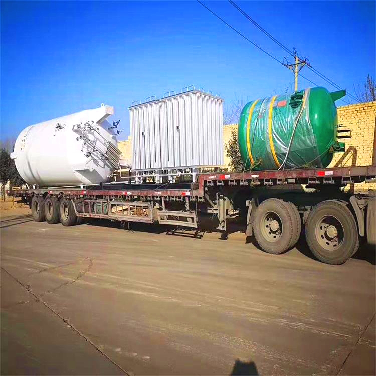液态二氧化碳储罐,由于受井下空间及矿车自身大小的限制,储罐有效容积宜在2立方米,由此计算出该储罐的罐体直径应为1.2米,简体长度1.5米,两边椭圆封头,卧式结构。由于该装置由二氧化碳运输槽车直接充装,故该储罐的设计压力及温度均按照现行的二氧化碳槽车的要求设计。