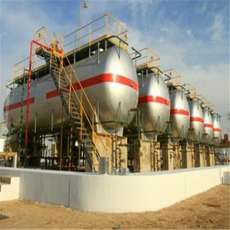 2、停止注水,然后将氮气从放空口注入储罐,打开储罐排污口,储罐内的水在氮气的压力及自重下从排污口流出,石家庄50立方地埋液化石油气储罐,50立方液化气残液储罐 煤气罐直到将储罐内的水排净为止。