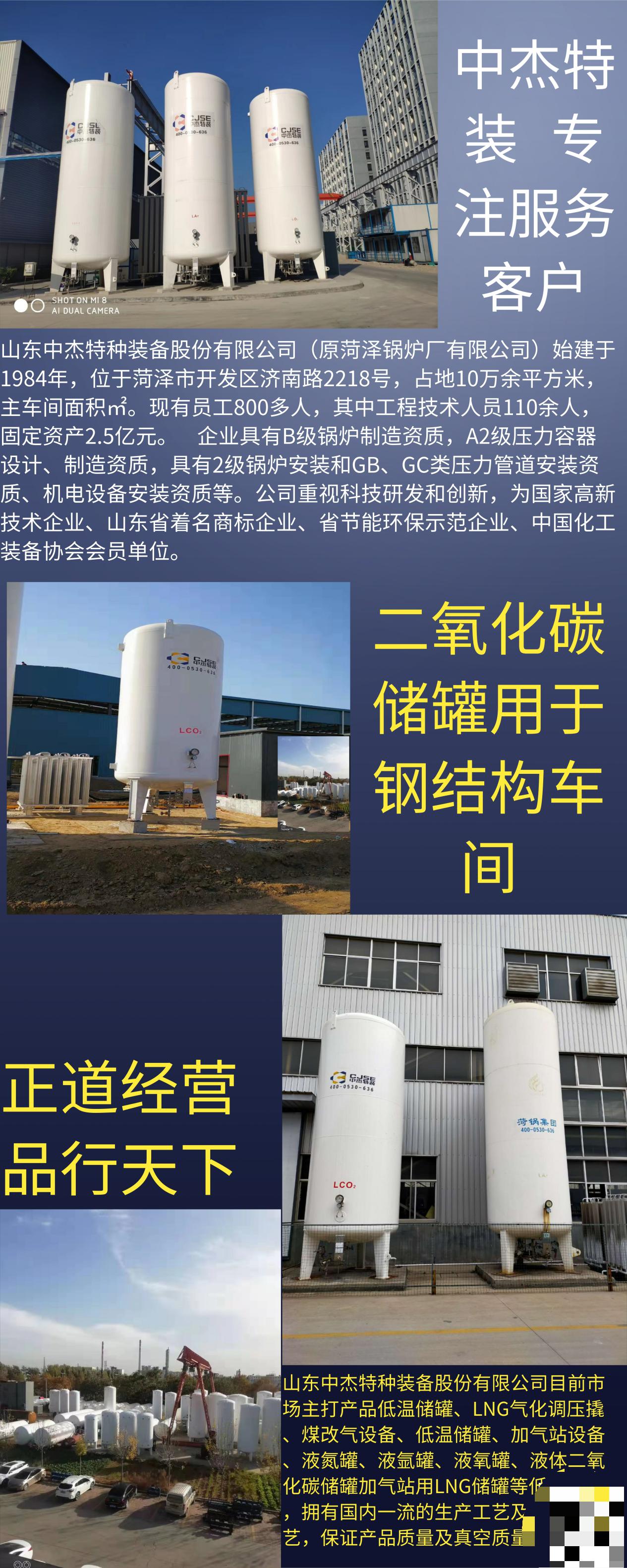 3.功能安稳牢靠:液态二氧化碳储罐具有功能安稳、操作保护便当、发动时间短、运转平稳等长处,产品全国。