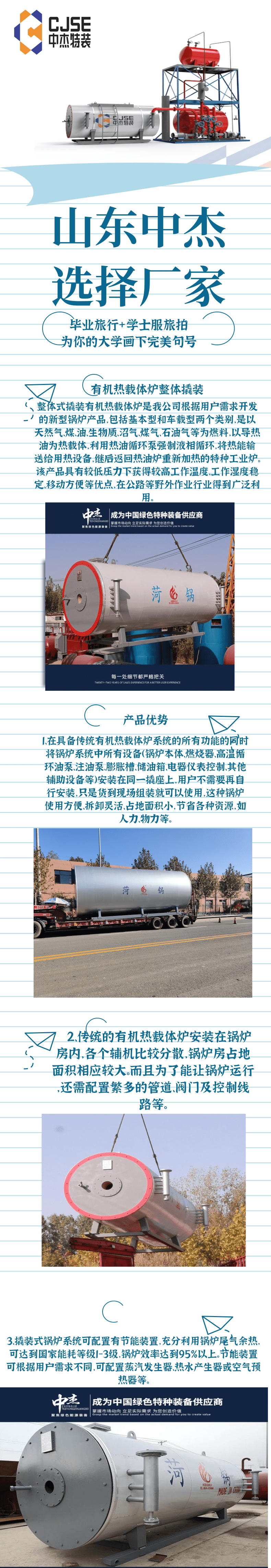 我们在此次项目中提供的产品为两台1200万大卡的燃气导热油炉。中杰生产的20吨燃气导热油炉本体重量约56吨,采用卧式三回程三层盘管结构,盘管间采用并联结构。锅炉炉膛四周均被热媒盘管所包围;