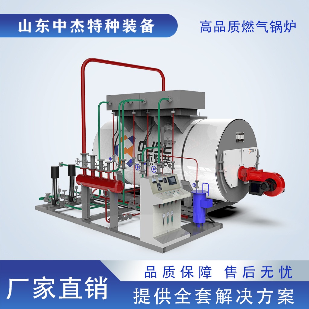 锅炉主要由锅壳和炉胆两大主体和保证其安全经济连续运行的附件,仪表附属设备,自控和保护系统等构成。这种锅炉是带水冷璧的锅筒式锅炉,锅筒内左右分区安排两个回程的烟火管,在锅筒前部的前烟箱折返。锅筒和下连箱之间,有下降管和水冷璧管,构成燃烧室的框架。锅筒上部有汽水分离器,以减少水蒸气带出的水。锅体受热面是锅筒的下部,水冷璧管和烟火管。