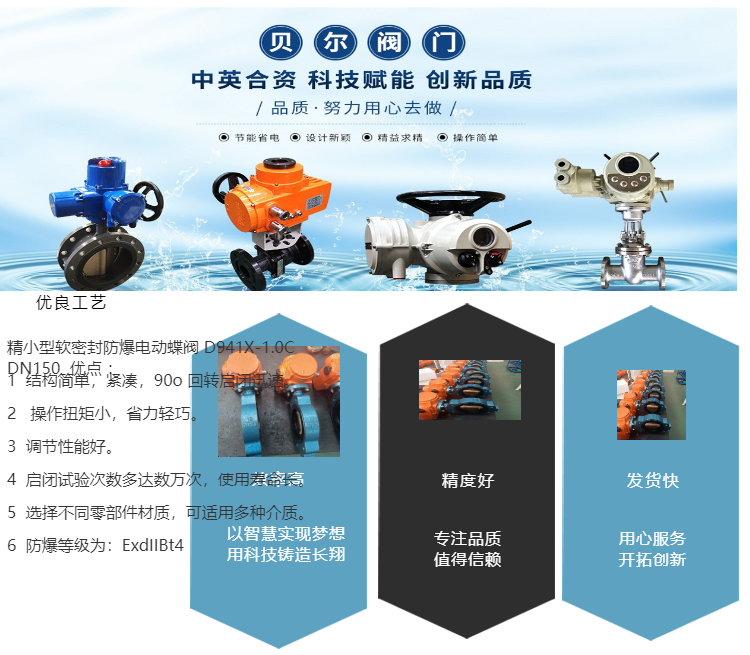 贝尔阀门 精小型软密封防爆电动蝶阀 D941X-1.0C DN150