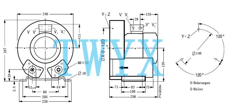 | 外型尺寸:256*247*246 真空漩涡气泵节省电能,降低能源消耗,节约成本,节电率达到20%以上。 提高电网功率因数,节省就地补偿装置,电网功率因数可较大幅度的提高。 真空漩涡气泵性能优点: 1. 完全无油,无水压缩。 2. 运行可靠、坚固耐用 3. 设计可靠、重量轻 4. 所有的高压风机的电机均为IP55的防护等级,F级绝缘。 5. 采用双频(50/60HZ)及宽电压的电机使其满足几乎世界上所有地区的电压等级。 6. 轴承外置式设计,使得风机能够承受较高的工作温度,并且提高了风机的运行可靠性和使用寿命。 7. 引进变频驱动新概念,比用普通电机驱动的同种型号性能可以提高到300%。 8. 叶轮与泵体间的的密封形式减少高压气体在压缩过程中的压力损失。