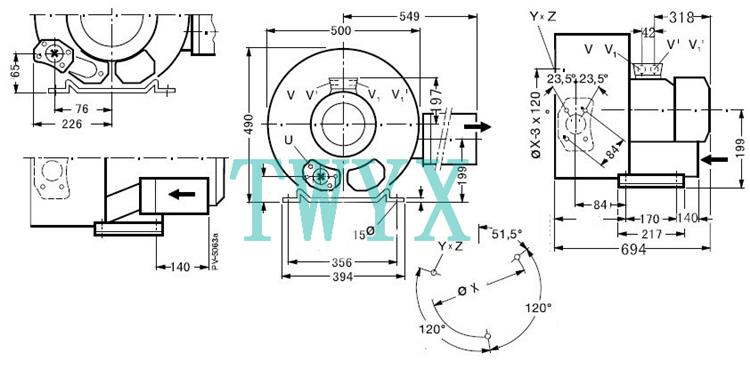 | 外型尺寸:694*500*509 进出口径:2.5寸(65) 高压漩涡气泵性能好,高压压铸机壳,CNC加工中心,烤漆喷涂烘干流水线,独立人员检查,试机合格出厂 质量可靠性能.采用进口高速NSK,耐高温SKF轴承可以平稳连续运行15000小时而无需任何维护。风机电机采用IP55防护等级,F级绝缘等级,使其无论是高温还是低温条件,无论是热带雨林地区还是1000米以上高海拔地区及沙漠中都可以使用,我们的产品都可以持续、安全、可靠、长效地工作。