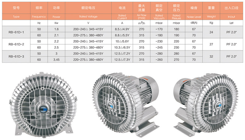 高压风机是吹吸两用的旋涡气泵,高压风机特殊的叶片设计,具有压力高、风量大、低噪音、耐高温等特点。高压和高吸力的产生在于叶轮独特的设计。高压风机的叶轮边缘带有多个叶片,当叶轮旋转时,由于离心作用,两个叶片中的空气被快速地往外缘方向运动,传转输能量,风压被快速叠加,便形成了高压或高力其速度得到增加。当空气被风道重新导入叶轮后,将再次被加速。当空气沿着一条螺旋形轨道穿过叶轮和侧槽时,每个叶轮片增加了压缩和加速的程度,随着旋转的进行,气体的动能增加,使得沿侧通道通过的气体压力进一步增加。当空气到达侧槽与排放法兰的连接点(侧通道在出口处变窄),气体即被挤出叶片并通过出口消声器排出泵体。
