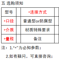 2. 无尾部字母,代表普通型,可测无腐蚀性气体or液体;