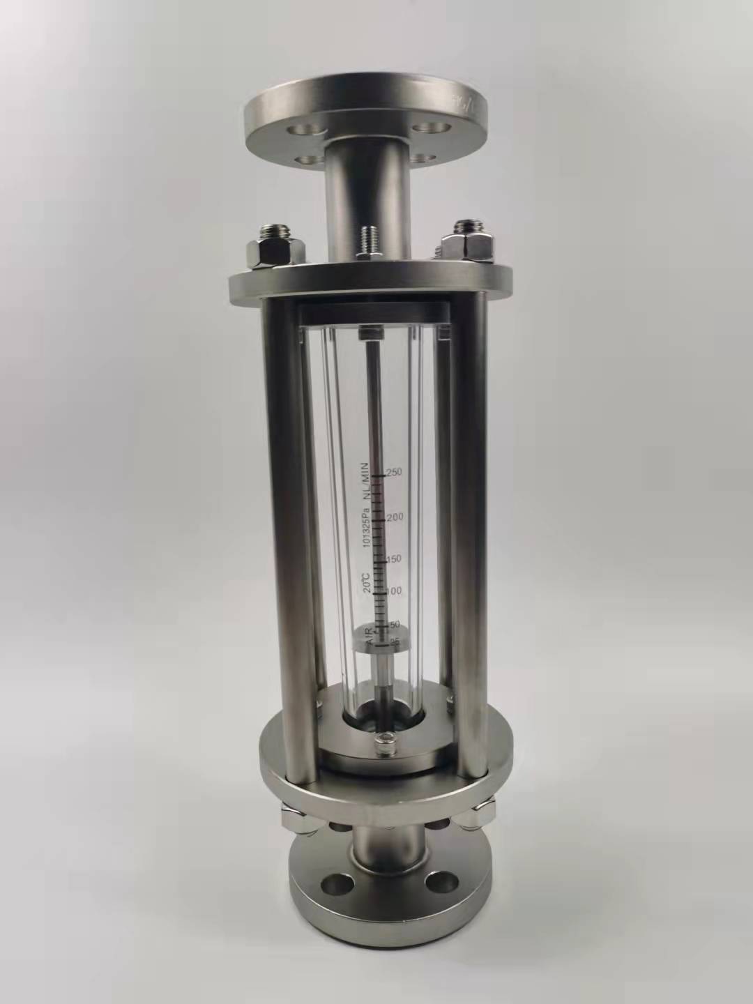 4.1FA100系列玻璃转子流量计开箱,检查无误后取出填充物,垂直(仪表中心线与铅锤线夹角不得超过5°)安装在无振动的管道上,并有正确的支撑,防止应力传入。