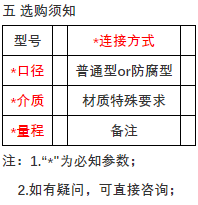 注: 1.如您需要的量程不在表格中,请咨询。部分量程可特殊定做;
