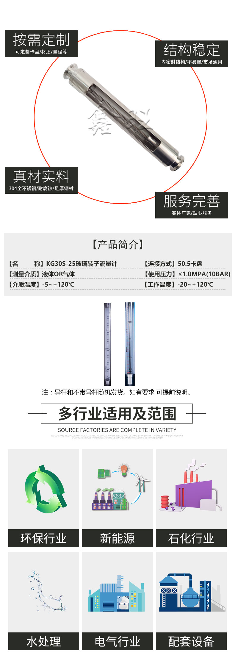 KG30S-50卡箍连接玻璃转子流量计 氦气硫酸卡盘玻璃浮子流量计 二氧化碳气体