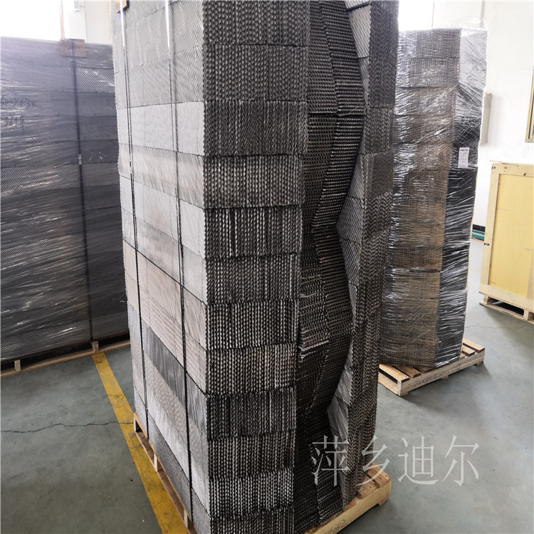 江西省萍乡市迪尔化工填料生产的金属网孔波纹填料:规整填料由于其结构规则、均匀、对称、规定了汽液流路,改善了沟流和壁流 现象,具有阻力小,通量大,分流效率高等优点,在精细化工、石油化工,化肥等众多领域的塔器内得到了广泛应用。