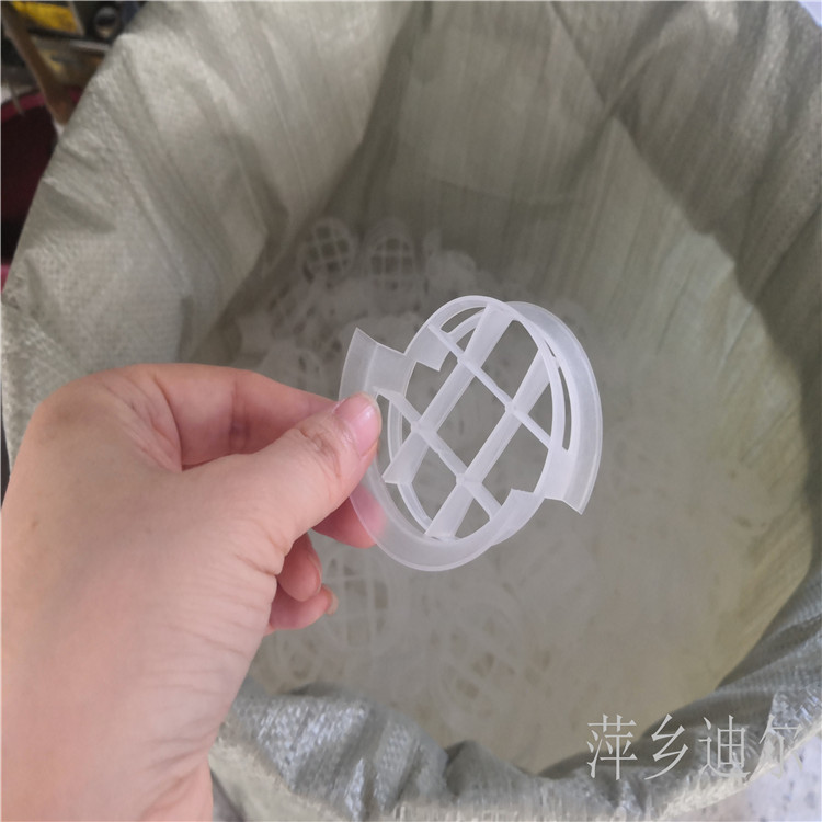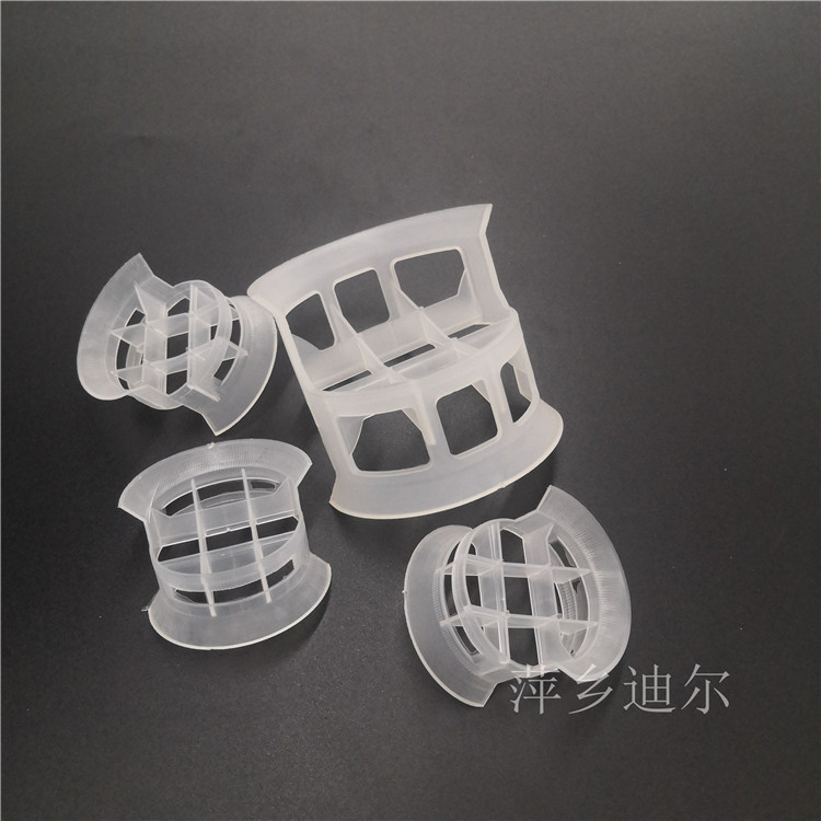 聚丙烯共轭环简称PP共轭环,或称塑料聚丙烯共轭环,是塑料共轭环的一种常用的材质,长期使用温度达100℃,热变形温度127℃,材质密度0.89-0.91g/cm3。该填料结构上吸收了鞍型填料和环型填料的优点,且结构更加紧凑对称。 相当于将阶梯环沿轴向对半剖开,然后将其中的一半倒转108°连接而成,其中每个半圆形构件中间又有一个半环形肋片,增大了传质表面积,改善传质性能,防止填料散装时填料体之间发生叠合。