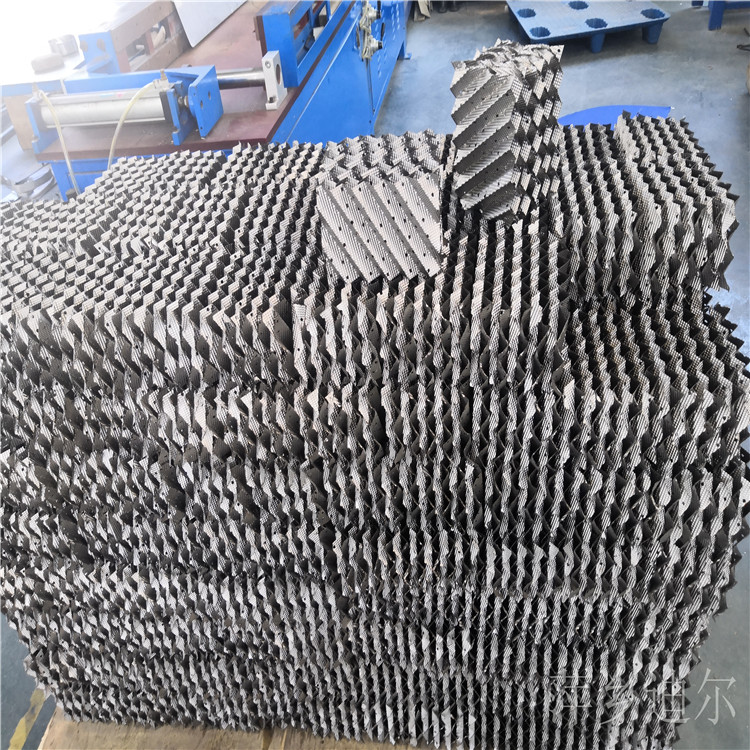 450Y 500Y孔板波纹填料是孔板波纹填料的一种主要的形式。波纹峰高与塔轴线倾角按45°和30°,分成Y、X两种型号。金属孔板波纹填料保持了金属丝网波纹填料结构特点,改用表面有沟纹的孔板制成,增加了液体的均布和填料润湿性能,提高了传质效率。每盘单元高度为50-200mm,直径超过1.5m,填料制成分块形式。该填料的波纹板片上冲压有许多f5mm左右的小孔,可起到粗分配板片上的液体、加强横向混合的作用、波纹板上轧成细小沟纹,可起到细分配板片上的液体、增强表面润湿性能的作用。金属板波纹填料强度高,耐腐蚀性强。