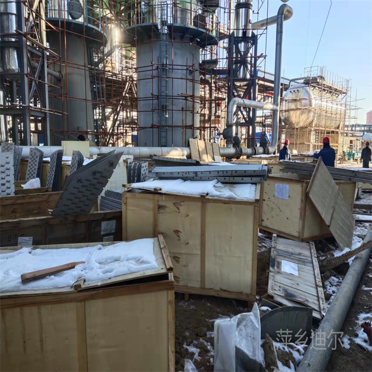 近日,我公司承接的内蒙古某化工企业年产60万吨煤制乙二醇项目甲醇洗及气化装置19台塔内件开始现场安装施工,为了尽快完成安装工作,现场紧张有序,我公司施工队风雪兼程赶进度,该项目供货的产品有不锈钢叶片式除沫器、双溢流塔盘、进料管等塔内件,