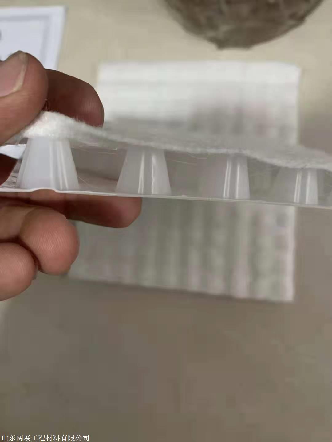 塑料排水板是由聚苯乙烯(HIPS)或者是聚乙烯(HDPE)为原料塑胶底板经过冲压制成圆锥突台或者加劲肋的