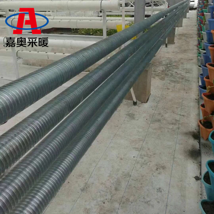 温室大棚高频焊翅片管暖气片可应用于蔬菜大棚采暖、花卉大棚采暖、烘干房用翅片管暖气片、工业车间厂房采暖,翅片管散热器选用碳素钢材质,耐压高,而且钢制绕片韧性好,不易断裂。