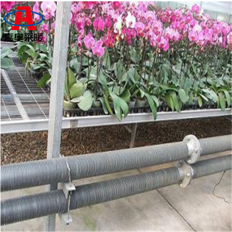 钢制翅片管对流散热器河北嘉奥散热器公司生产的工业钢制高频焊翅片管暖气片是为工厂厂房和温室大棚特定环境而研制生产的大型散热器设备,由高频焊翅片管、档板和U型联箱组成。