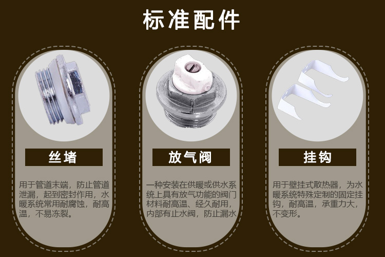 钢管五柱式暖气片因为材质不同,会造成升温不同步,增加能耗,容易造成室内温度不均匀,三还容易形成电位差,加速暖气片腐蚀从而导致暖气片漏水等现象。按照这个方法,我们可以大致估算出整个家里需要装多少暖气片能够达到家里的散热量。当然如果需要精算的话,就要根据每个房间的面积和对应要装的暖气片的单片散热量去计算