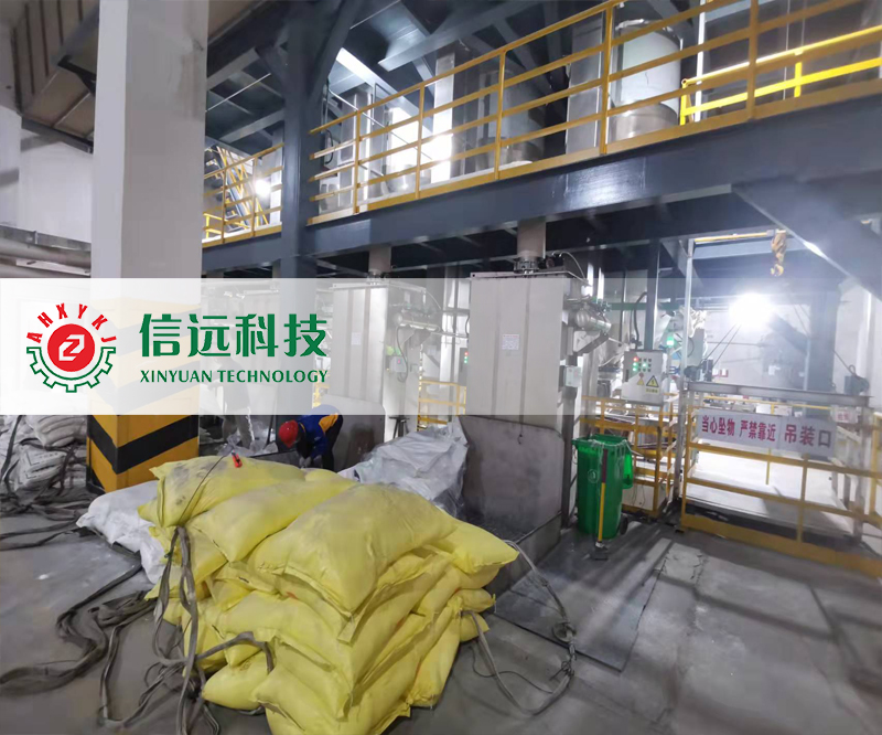 (2)原料输送至平台,采用在平台人工拆包、计量,直接向混合机倒料方式。