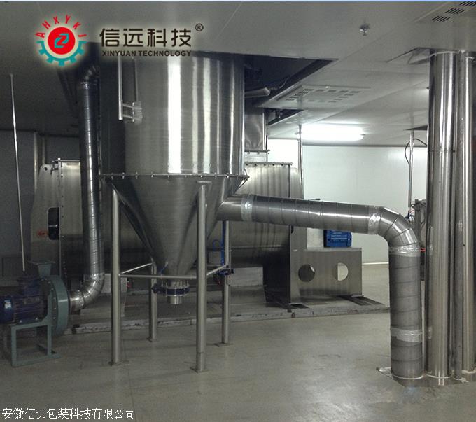 以负压输送方式将物料从地上上料仓提长到高位过渡料仓。设备包含真空上料机、上料管道、与地上上料仓的连接组件等。在用于兽药粉剂、兽药散剂、兽用预混剂有特别优点。
